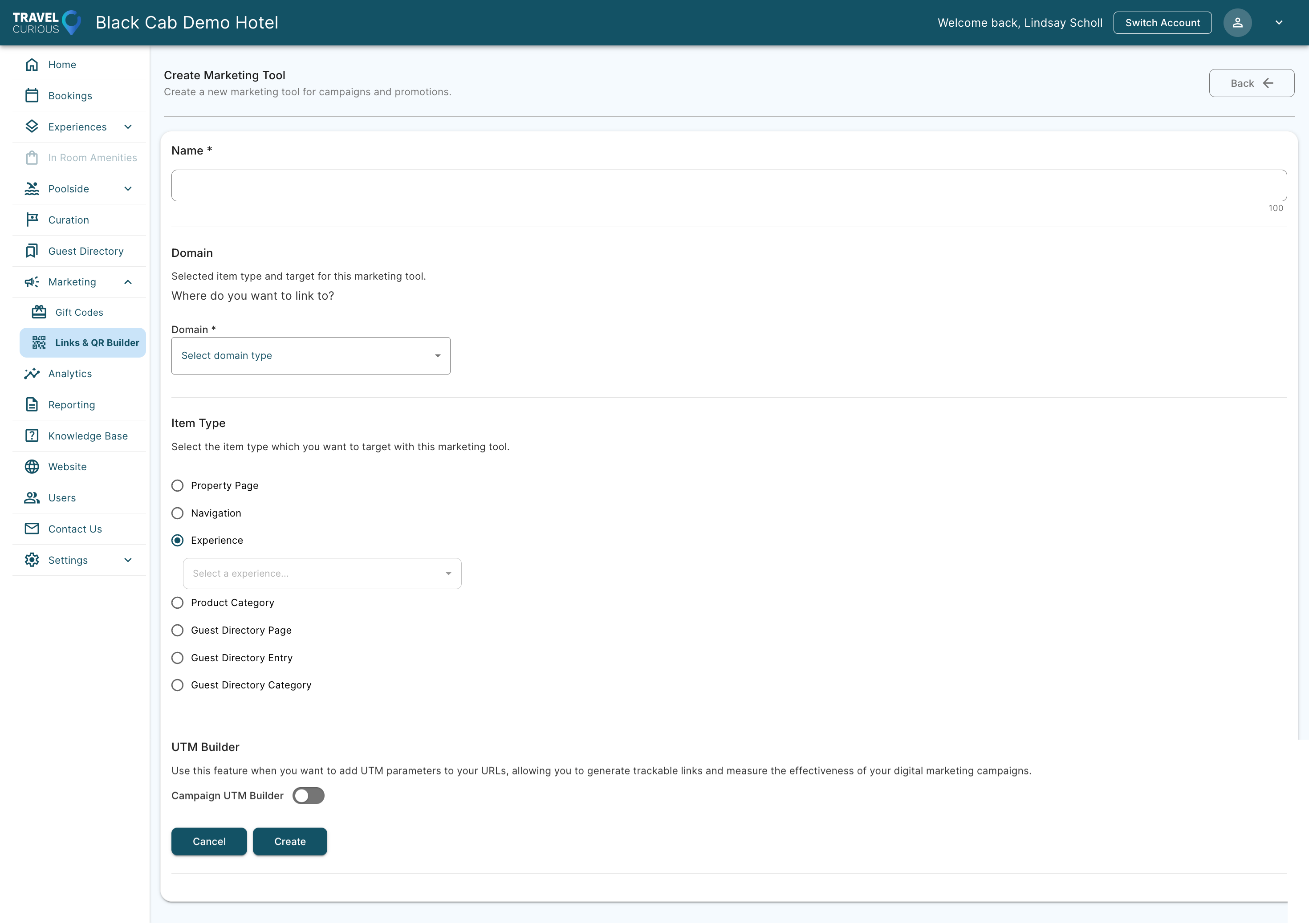 In the left sidebar, navigate to Marketing and select Links and QR Builder.