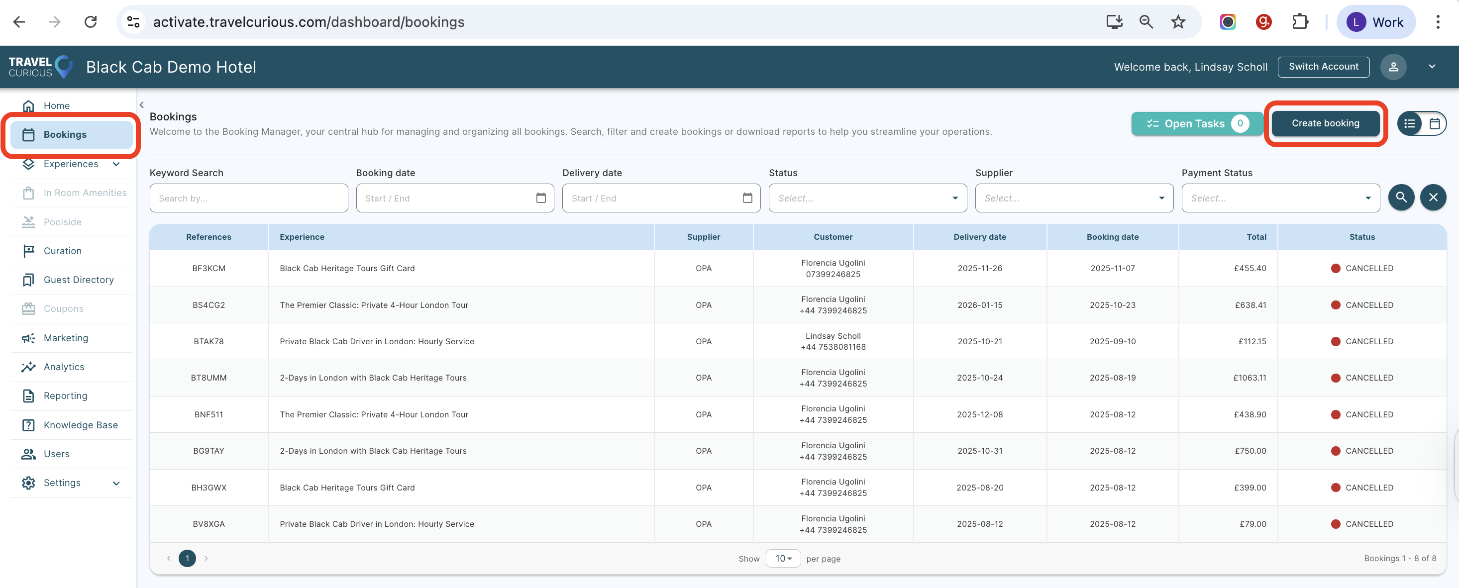 This guide will help you create a booking in Activate for an experience so you can record and manage reservations (including offline/internal bookings).
