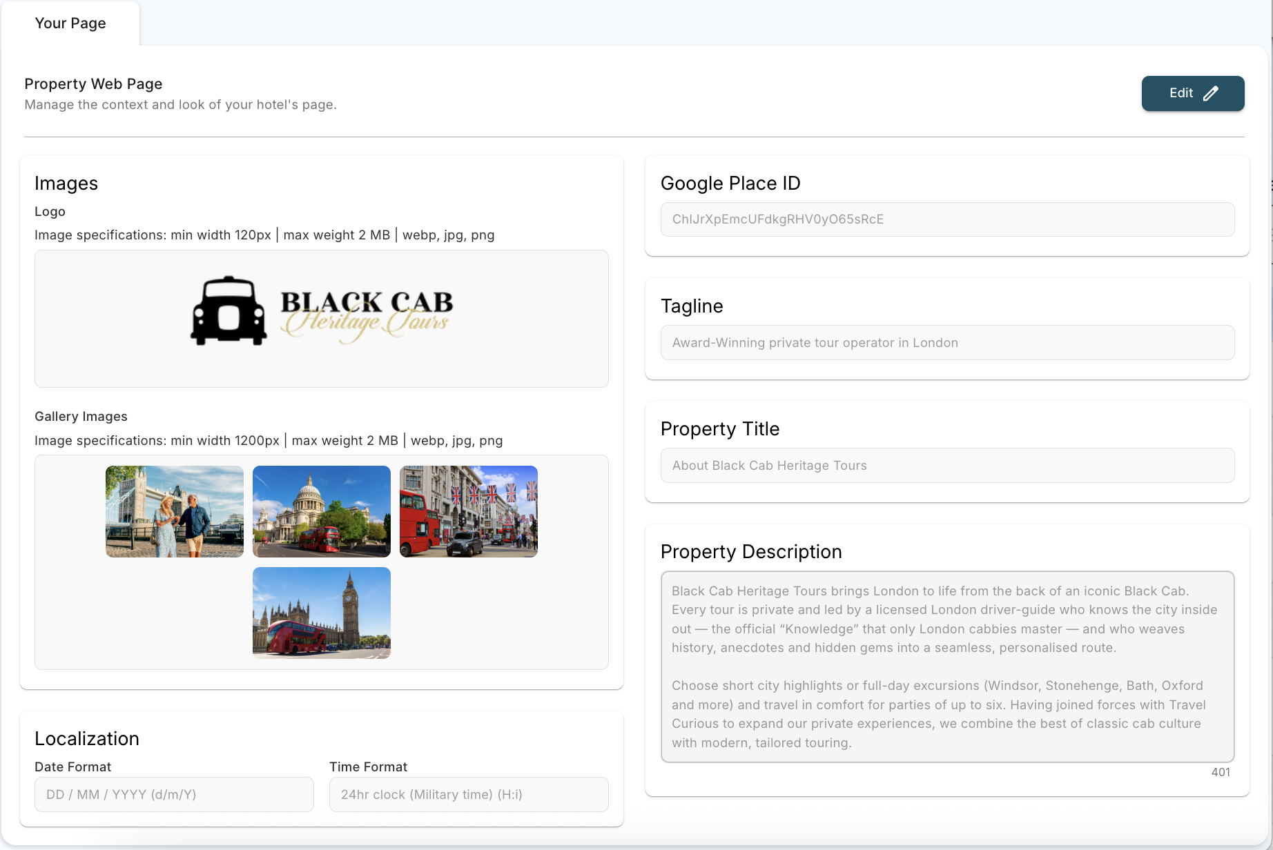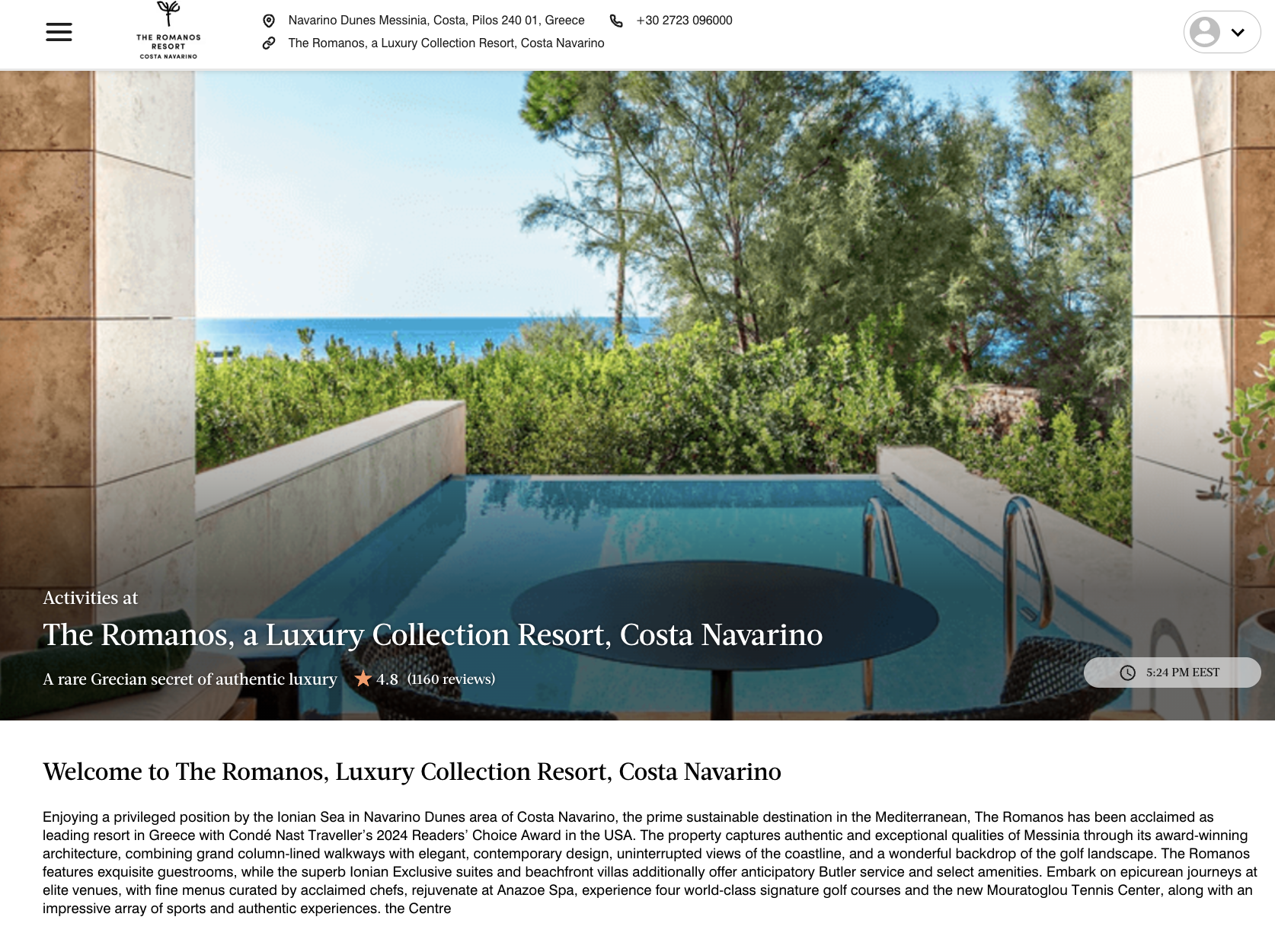 - A property description that can expand on the offerings of the hotels or the history of the property.